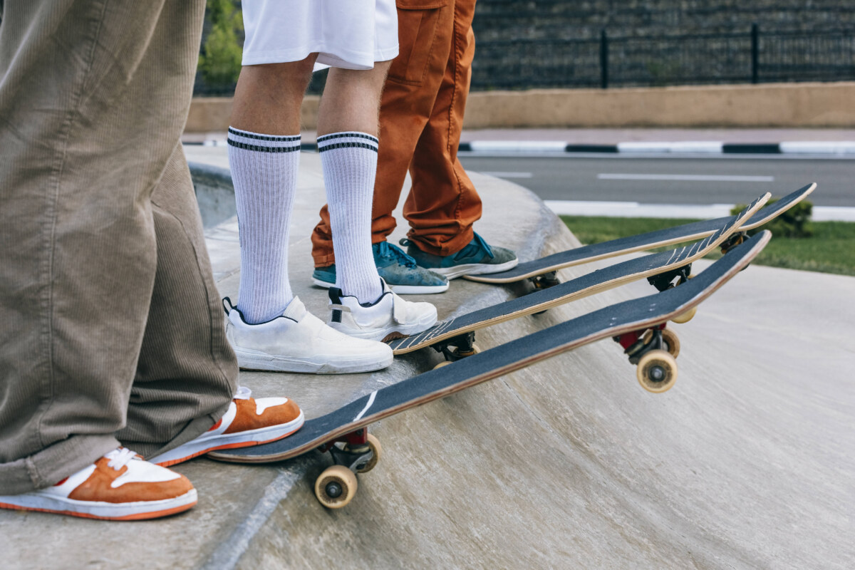 I negozi di articoli da skate sono attrezzati pure per la commercializzazione dell’abbigliamento per lo stile skate che annovera le colorate T-Shirt, le fantastiche felpe, i pantaloncini imbottiti, i cappellini, di solito anche in abbinamento con gli accessori, che in tante occasioni diventano essenziali per completare il look desiderato.