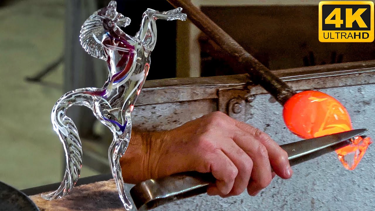 La lavorazione di un cavallino rampante, stile Ferrari, con la tecnica del vetro massello, è considerabile un manifesto dell’italianità.